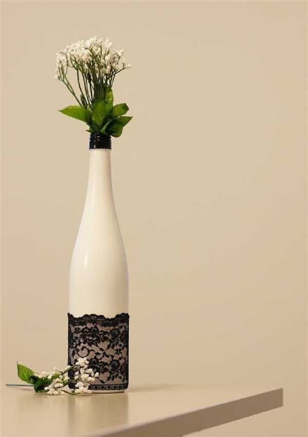 Прежде, чем сделать из бутылки вазу, ее можно задекорировать, например, так: