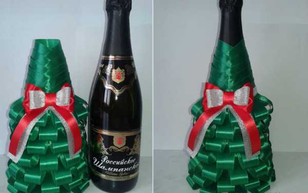Используя бутылку из-под шампанского, можно смастерить новогоднюю елочку, которая украсит интерьер вашей квартиры в период праздников.