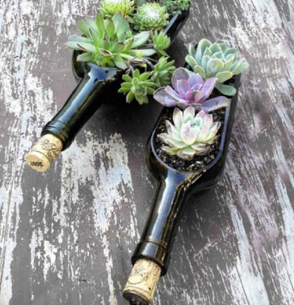 Что сделать из стеклянных бутылок еще? Да хотя бы коршки для растений. Выглядят они весьма эффектно
