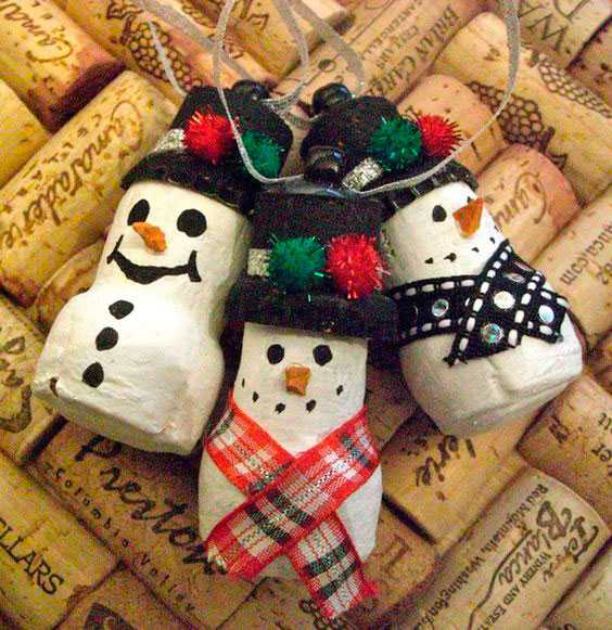 Кстати, пробка хорошо поддается окрашиванию акриловыми красками или краской из баллончика. Если на пробки надеть разноцветные вязаные или фетровые колпачки и нарисовать рожицы, получатся веселые гномики. Из одинаковых кружков склеить снежинку и украсить ее пайетками, стразами или ленточкой.