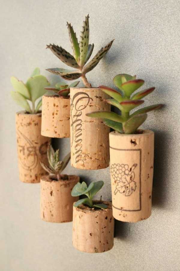 Если ваш интерьер выдержан в определённом стиле, с которым винные пробки никак не сочетаются, то почему бы не попробовать сделать интересные предметы декора для дачи. Например, оформите цветочные горшки или сделайте межкомнатную шторку.