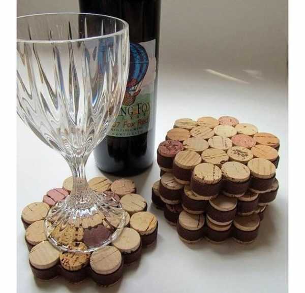 Один из самых практичных вариантов — сделать из винных пробок подставки под горячее. Они всегда нужны, такого добра много не бывает. К тому же пробка отлично подойдёт для этого, так как от горячего она не портится и сможет защитить ваш стол от нежелательного температурного воздействия. Сделать такие подставки своими руками вы сможете, просто склеив их между собой. Для разнообразия можете разрезать винную пробку на равные части и соединить их между собой при помощи специального клея.