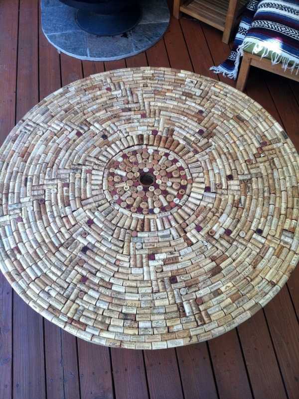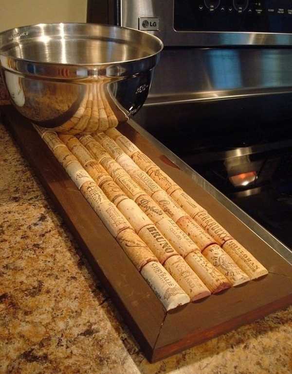 Винными пробками можно задекорировать столешницу, если ее поверхность повредилась и уже не радует вас своими видом.