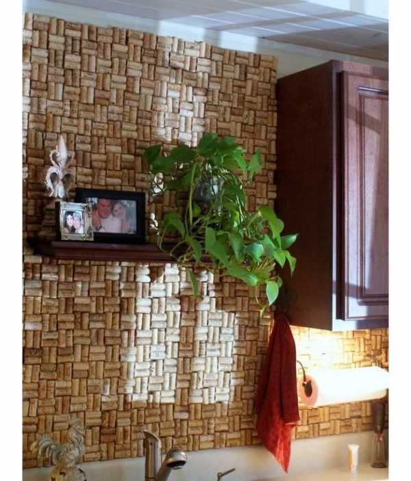 Оказывается, винные пробки могут сослужить добрую службу, а ещё внести в интерьер нотки креативности. Яркий пример тому — настенные панно из пробок. Некоторые умельцы выкладывают из них целые кухонные фартуки и облицовывают ими стены. Конечно, для этих целей необходимо немало пробок, но если их не выбрасывать, а определить для них какую-нибудь коробку (например, из-под обуви) и складывать их туда, то рано или поздно вы наберёте определённое количество пробок. Так вы сможете самостоятельно сделать из них если не целую стену, то хотя бы красивое панно. Для пущего эффекта можете покрыть его прозрачным перламутровым лаком, который обычно используется для обоев.