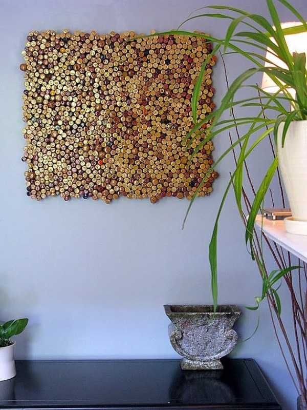 Весьма интересные поделки из винных пробок можно сделать в качестве декора интерьера. Главное – накопить их побольше, стараясь, чтобы в коллекции были пробки разных оттенков, форм, размеров.