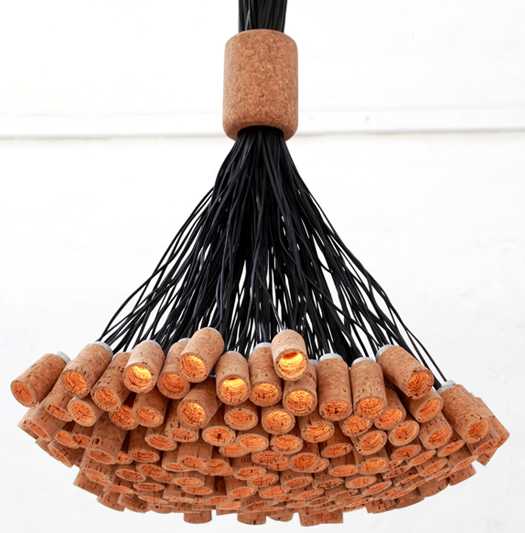 Также нам понравились настольные светильники, в которых абажур обклеен пробками.