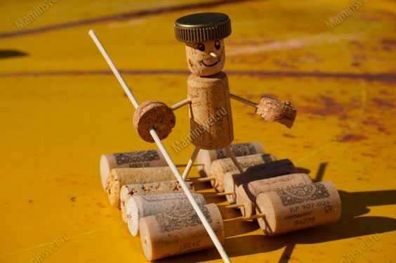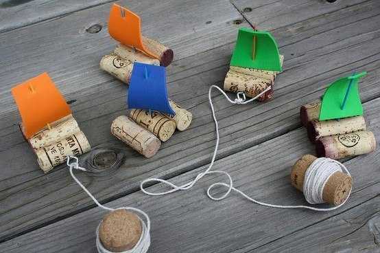 Если соединить несколько пробок с помощью деревянных зубочисток и оснастить их парусом, получится плот. Им ребенок может играть, купаясь в ванне или плюхаясь летом в детском надувном бассейне. Можно даже устроить соревнования, чей плот приплывет быстрее, если дуть на него.