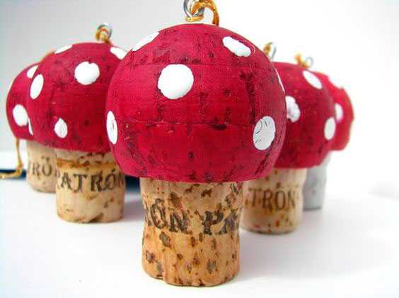 У пробки в форме гриба шляпку можно раскрасить под мухомор и использовать в качестве игольницы.