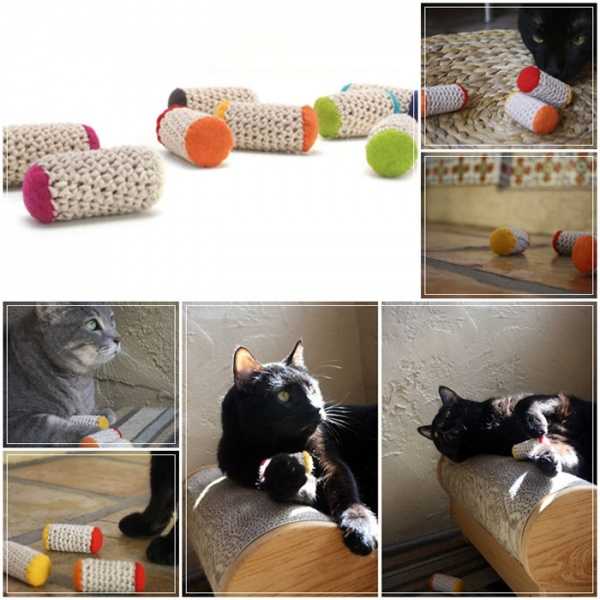 Связав или сшив из плотной ткани чехол на пробку, можно сделать игрушку для своего мурлыкающего питомца. Ему понравится новый объект для игр и затачивания когтей. Можно сделать из пробки мышку, натянув на нее чехол из меха с пришитыми или связанными хвостиком и ушками. Возможно, новая игрушка станет киске интереснее обуви и мебели, убережет их от порчи острыми зубами и коготками.
