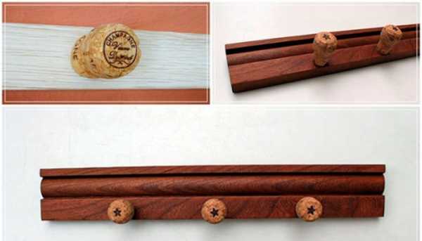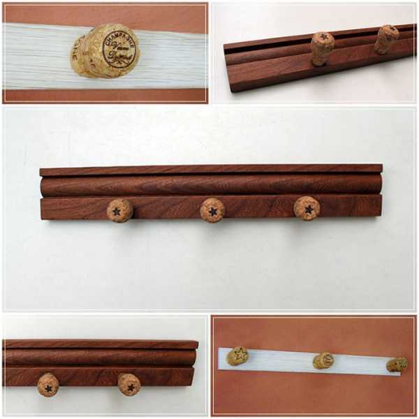 В загородном доме или на даче уместной будет вешалка, изготовленная из струганной доски и винных пробок, прикрепленных к ней с помощью шуруповерта. Она достаточно проста в изготовлении и интересна с дизайнерской точки зрения. Обработав доску морилкой, олифой, лаком можно придать ей желаемый цвет.