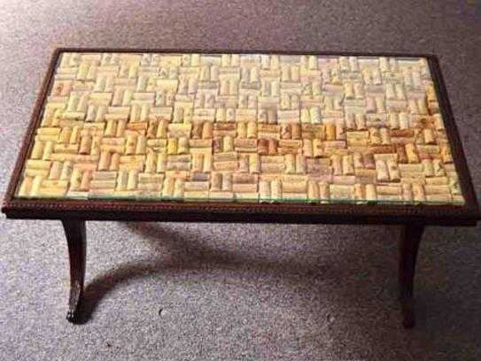 Из пробок можно смастерить небольшой столик или декорировать его.