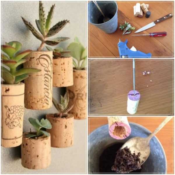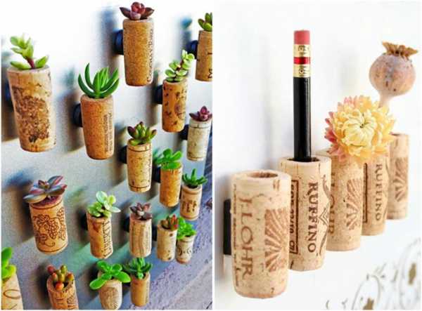 Миниатюрные цветочные горшки подойдут для маленьких растений или всходов, потребующих с течением времени пересадки. Выдолбите в пробке углубление, засыпьте землей и посадите крошечное растение. Чтобы горшочки не опрокидывались, на пробку наклеивают магнитную ленту и фиксируют, например, к боковой поверхности холодильника, ближе к окну.