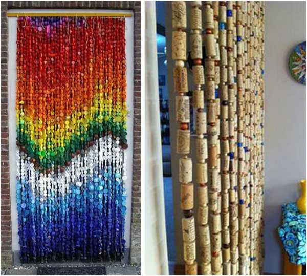 Для создания нитяных штор потребуются леска (или веревка) и, в зависимости от вашего дизайнерского решения, разноцветные бусины или краски и нож. Фиксировать получившиеся нити можно к горизонтальной нити, приделанной к струганной, лакированной доске, которую крепят к стене или любым другим подходящим вам способом.