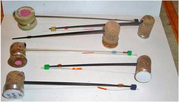 В нескольких пробках просверлите сквозное отверстие, а в той, что будет верхней в ручке,
