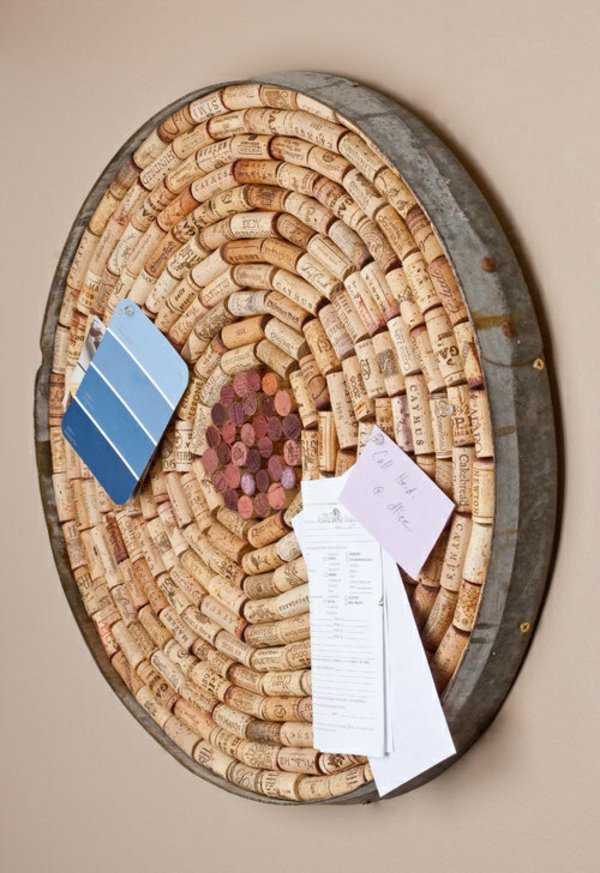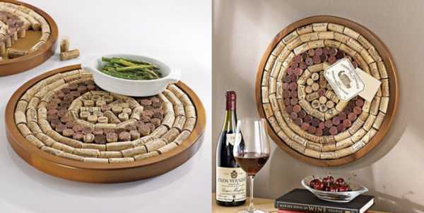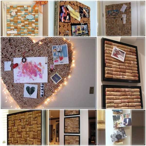 В пробковое панно или стену легко и удобно прикалывать записки, фото. Из пробок можно выложить целые картины и составить мозаики.