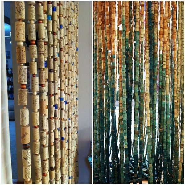 Если отрезать у пробок закругленные части и собрать гроздями на проволоку, то получится оригинальная инсталляция в виде лозы с виноградом.