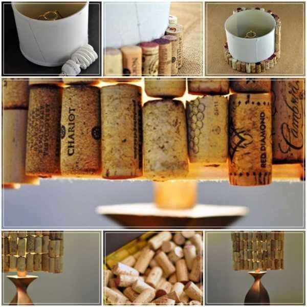 К пластиковому абажуру приклейте боковыми поверхностями винные пробки, оставляя между ними промежутки. Через них будет таинственно проникать свет и создавать в комнате атмосферу тепла и уюта.