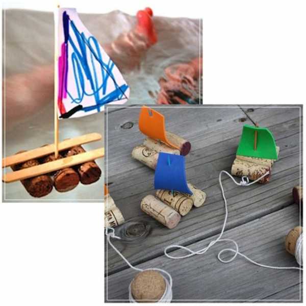Две или три пробки склейте между собой, с помощью зубочистки и бумаги соорудите парус и отправьте кораблик покорять водное пространство. Детям понравится процесс такого простого и интересного кораблестроения, а кораблики, изготовленные разными детьми, могут посоревноваться в красоте, устойчивости и скорости.