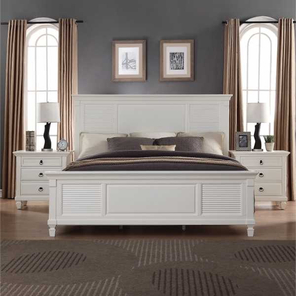 Большая белая кровать с мягким высоким изголовьем, расположенная у окна