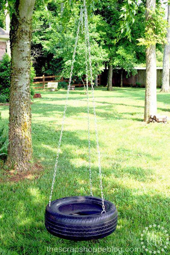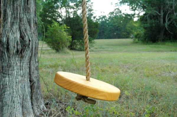 Второй вид предназначен для детей в возрасте от трех лет и старше. Привязанная к канату автомобильная покрышка – одновременно и устройство для раскачивания, и отличный тренажер для вестибулярного аппарата, заодно позволяющий увеличить силу мышц и развить координацию.
