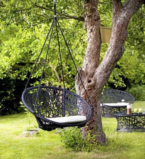 Если захочется побыть в одиночестве и поразмышлять на природе о чем-то вечном, покачиваясь в уютном кресле, соорудите себе такое кресло-качель. Согласитесь, есть в нем что-то винтажное, а бахрома с кистями настраивает на поэтический лад.