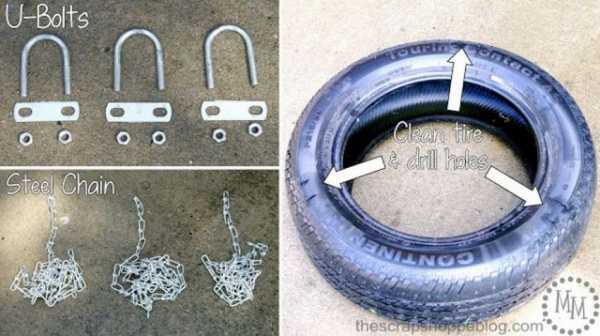 - Две сварных цепи толщиной 0,5 см и длиной по высоте конструкции.
