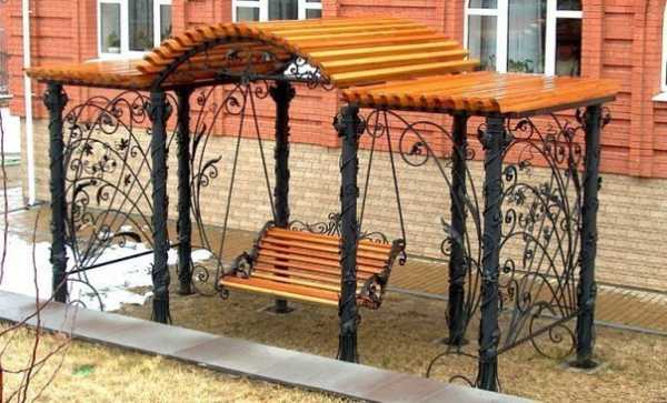 Отдельно стоит отметить разделение конструкций еще и по материалу их изготовления. Все большую популярность набирают садовые качели из металла, так как при относительной легкости качели, долговечность ее службы обеспечивается прочностью материала. Помимо этого, металл не требует особого ухода.