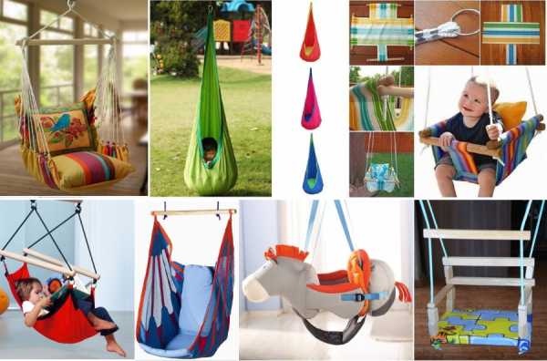 Любые качели состоят из сиденья и системы подвеса, закрепленной на подходящей опоре. Опора бывает либо внешней, либо является частью конструкции. Простейший вариант для квартиры – доска, уложенная на канаты, закрепленные к потолку. Рассмотрим самые часто встречающиеся варианты конструкции качелей.