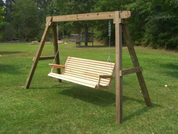 Рассмотрим подробно перечисленные стадии на примере процесса сооружения качели-скамейки на А-образной раме для всей семьи.