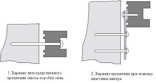 Первый способ заключается в том, что в оконной раме сверлят отверстия для специальных анкеров, которые вбивают в стену. Это достаточно непростой способ, однако более надежное крепление.