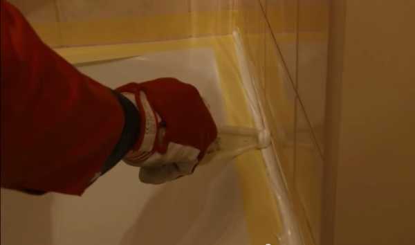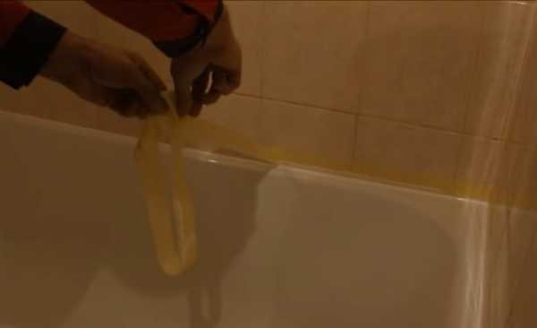 3. Перед нанесением герметика закройте края шва малярной лентой. Это нужно для того, чтобы при разгаживании шва лишний силикон не попал на прилегающую чистую поверхность стены и ванны.