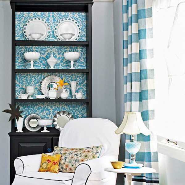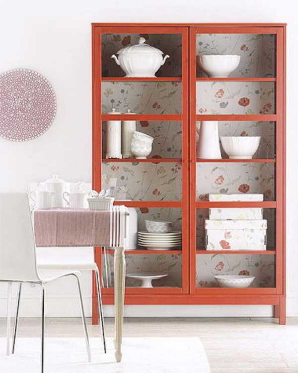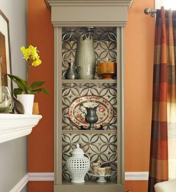 А теперь перейдем к задней части шкафа, на фоне которого располагаются аксессуары, книги или посуда.