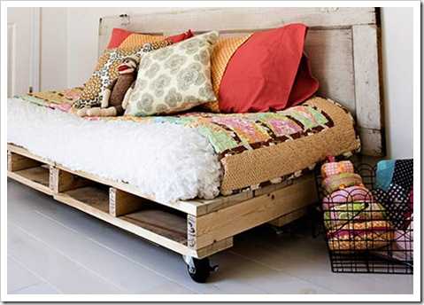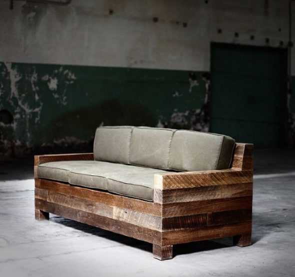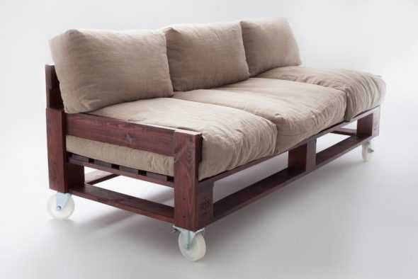 Более экономным вариантом из вышеперечисленных может оказаться создание предметов интерьера из уже отслуживших в быту вещей. Наиболее распространенный вариант – применение поддонов. Они скрепляются между собой, образуя спинку и сиденье. Для смягчения сиденья, как правило, используются матрас и подушки.