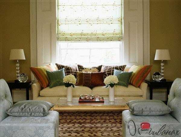 Подушки можно пошить из общего со шторами текстиля, это добавит гармонии в интерьере, но все зависит от общего стиля комнаты. Иногда диванные подушки – это настоящие шедевры: вышивка цветов «бабушкиным крестиком» или современные узоры пайетками и «гламурными» камешками, вязанные крючком или спицами наволочки, шитье ручной работы в стиле пэчворк и другие техники «хэнд-мэйд».