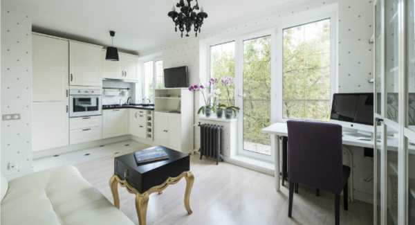 - Совмещение комнаты с лоджией или кухней. Лоджия способна добавить пространства квартире, если снести стену, отделяющую ее, после чего тщательно утеплить. В увеличенную подобным способом комнату можно перенести кухню, а на ее месте обустроить спальню либо детскую. Наиболее привлекательный вариант, а фото проектов перепланировки однушки, переделанной в двушку с его реализацией можно в большом количестве отыскать в Интернете.