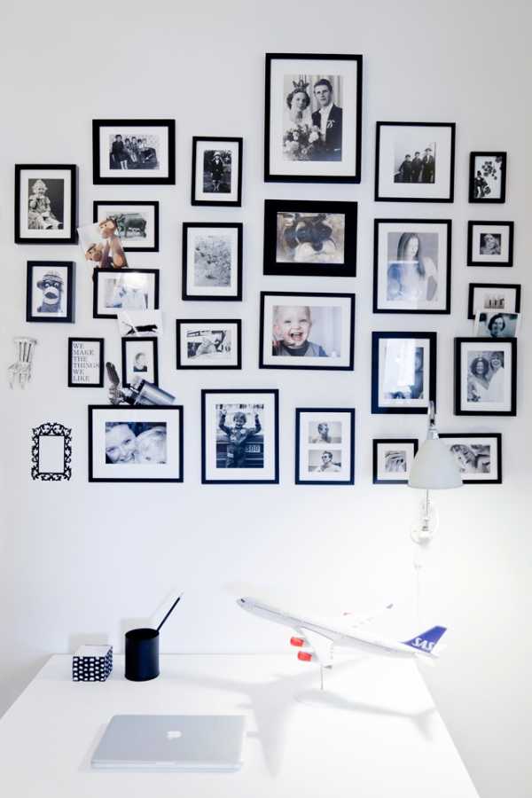 Порой очень важно придерживаться принципа – лучше меньше, да лучше. Не стоит завешивать все пустые стены квартиры фотографиями, дабы избежать ощущения фотовыставки. Оформите стену в прихожей или в коридоре. Оживите стену спальни красивыми фото вашей счастливой семейной жизни. Оставьте свободными остальные стены, это сделает помещение зрительно просторнее, не перегружая лишними деталями. Небольшое количество самых удачных снимков приковывает внимание и расставляет правильные акценты.
