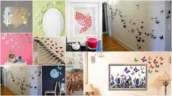 Большой популярностью пользуются разноцветные спирали из бабочек, волнистые линии. Также они могут окружать какой-либо предмет, перенося на него акцент. Оформление ниши в стене таким способом, а также с помощью коллажей или наклеек пользуется большой популярностью.