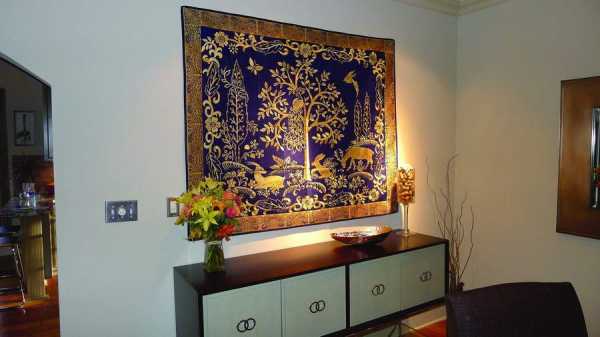 Другой популярный способ – вывешивание на стенах собственных рукодельных изделий. Особенно красиво смотрится в этом случае вышивка.