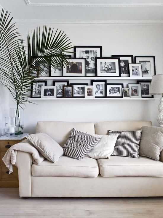 Варианты декорирования пустой однотонной стены в небольшой гостиной