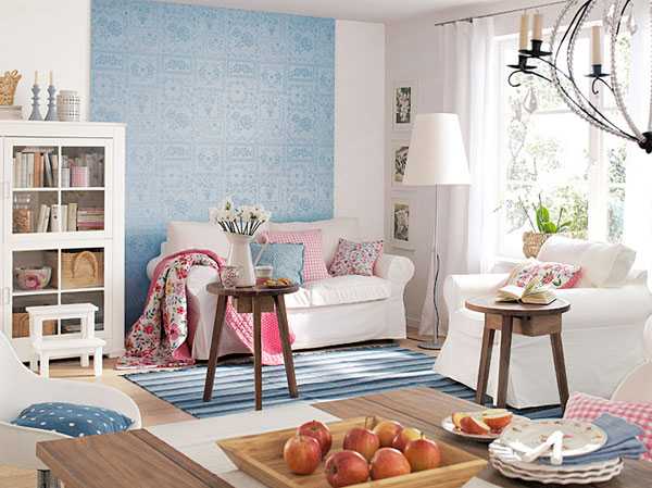 В маленьком помещении лучше выбирать фон спокойных и светлых тонов, а на нём размещать яркий декор. Но не переборщите с цветами и лучше не применяйте тёмные краски. Не стоит выбирать и множество элементов декора маленького размера, ведь они уменьшают комнату. Подойдут вертикальные предметы, которые способны визуально сделать потолки выше. Если вы отдаёте предпочтение обоям, то выбирайте мелкие узоры.