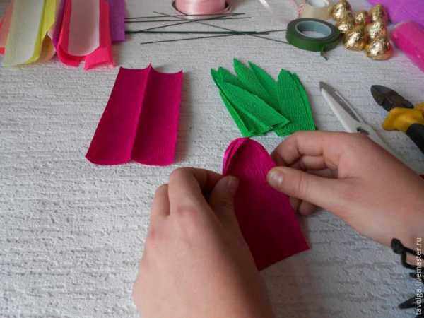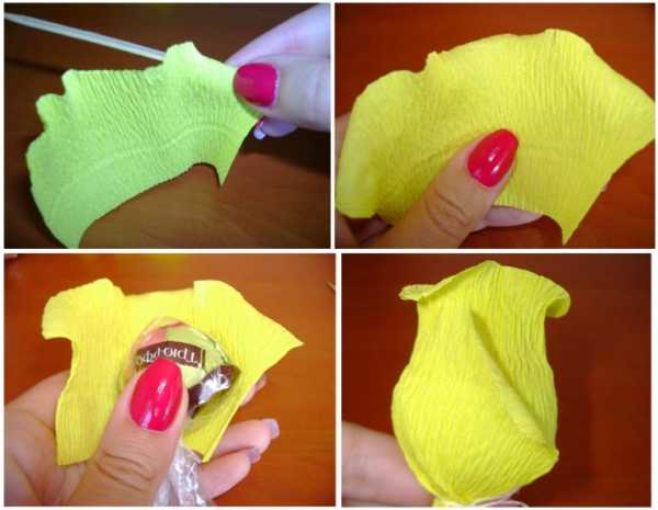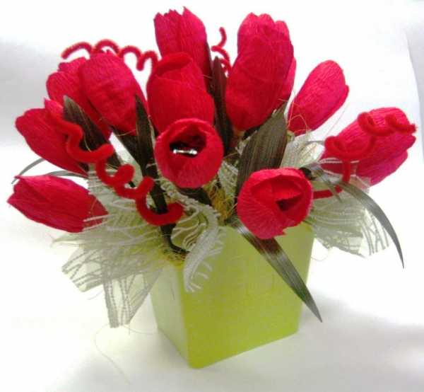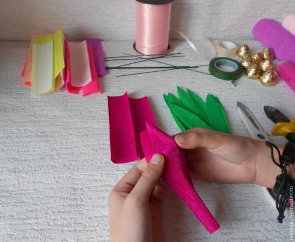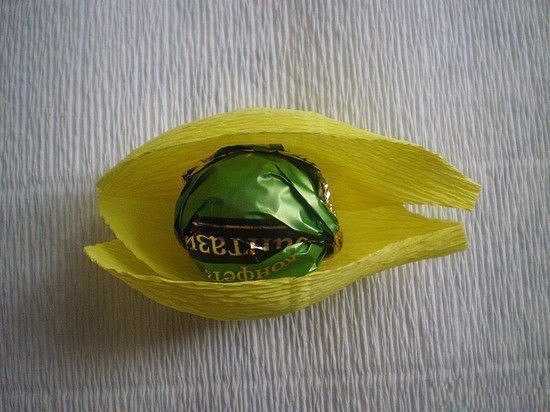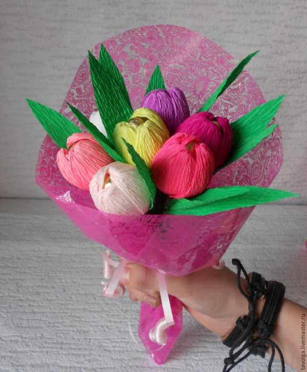 Тюльпаны из гофрированной бумаги с конфетами.