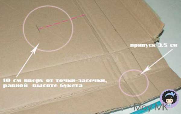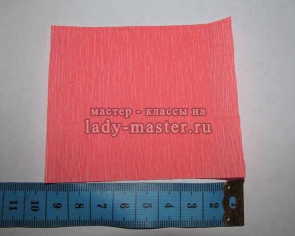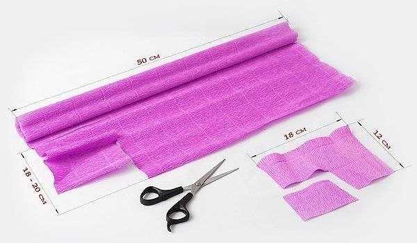 4. Возьмите розовую гофрированную бумагу. Отрежьте от рулона полоску шириной в 3 см. Обратите внимание: делать это нужно по линиям теснения, а не перпендикулярно им! Это важно, и, если ошибиться, никакого букета в дальнейшем не получится.