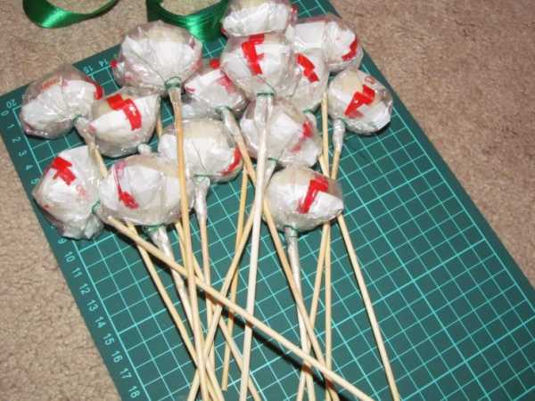 Делаем букет роз из конфетами фото пошагово
