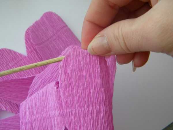 8. Деревянной шпажкой аккуратно оттяните кончики бумаги, одновременно загибая ее края.