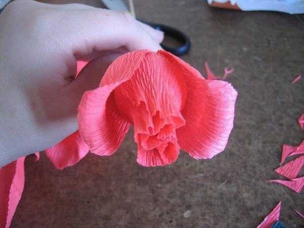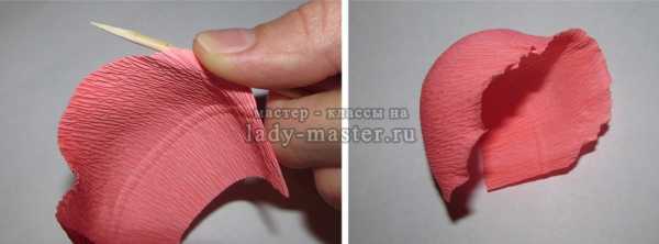 Всем лепесткам придать немного разную форму путем растягивания бумаги, чтобы имитировать живой распускающийся цветок.