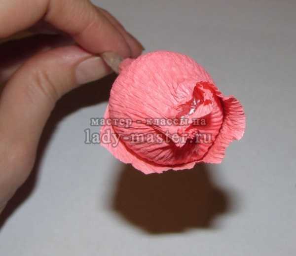 13. Если это необходимо, самую серединку бутона пальцами можно подкрутить, чтобы спрятать конфету.