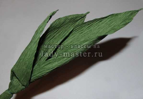 - Из фетра вырезать листья, примотать к шпажке проволокой.
