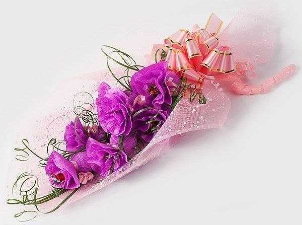 - Цветки собрать в букет, обернуть гофрированной бумагой.