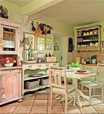 Существенную роль в декоре кухни профессионалы отводят, конечно же, текстилю. Он должен своей фактурой точно соответствовать стилю оформления. Так, для деревенского направления актуальны такие ткани как ситец, лен, бязь, а иногда даже обычная мешковина. Из рисунков выбирают обычно нарядную клетку или цветочные принты.