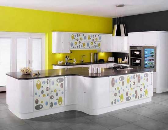 Определившись с общим стилем оформления, можно приступать к выбору мебели. Если же приобретение нового кухонного гарнитура не входит в ваши планы или угрожает вашему бюджету, можно обновить тот, что уже располагается на вашей кухне. Зачастую вполне достаточно заменить потерявшие вид в результате длительной эксплуатации столешницы и при необходимости обклеить детали гарнитура декоративной пленкой, чтобы придать кухне совершенно иной вид. Прекрасный способ, позволяющий как сделать кухню красивой, так и выделить определенную зону в помещении – окрашивание одной стены в контрастный цвет. На фоне такой стены очень эффектно смотрятся настенные панно и другие детали украшения интерьера кухни.